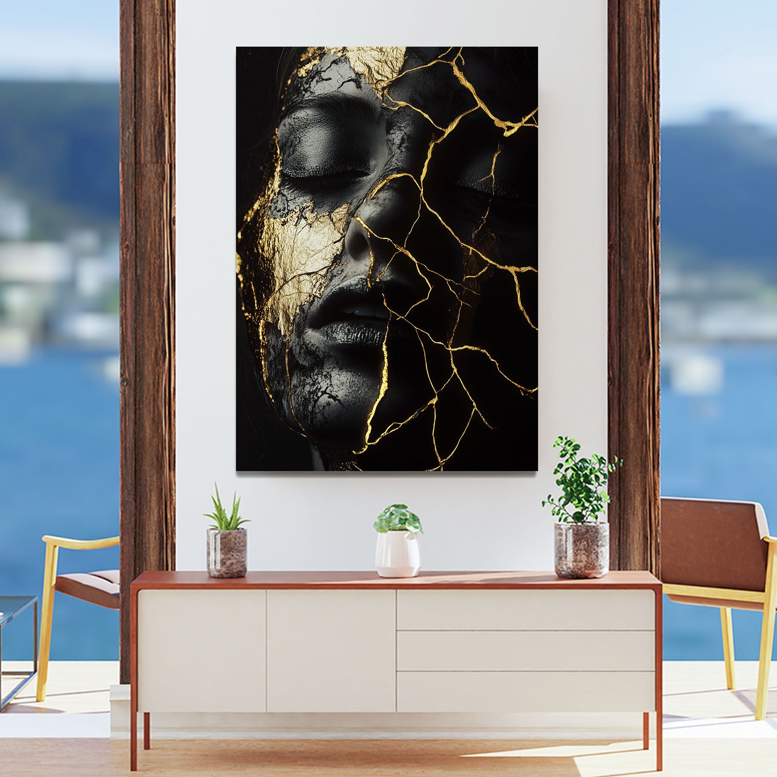 Cada curva y contraste de esta pieza llama la atención, invitando al espectador a sumergirse en la sofisticación que sólo el negro y el dorado pueden transmitir. Es una invitación a perderse en el lujo del diseño moderno.