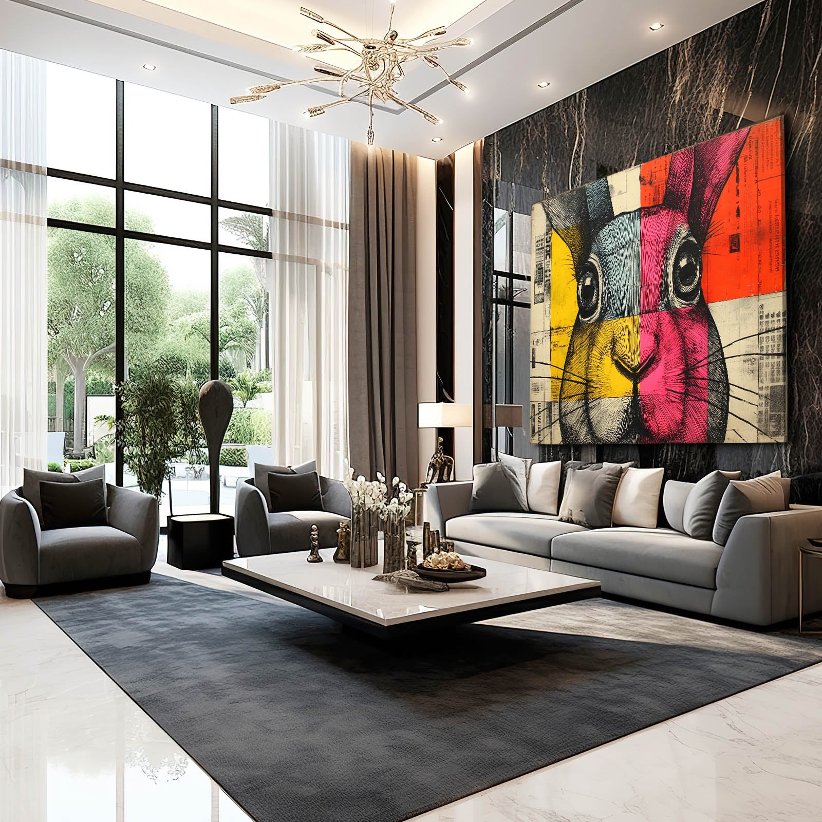 Every line and shade is designed to guide your attention with artistic rhythm, making the piece feel both energetic and beautifully structured. The mix of strong tones and soft shading adds dynamic balance to the portrait, giving the rabbit a memorable presence you can enjoy from any angle. This thoughtful arrangement brings creative harmony into your décor.