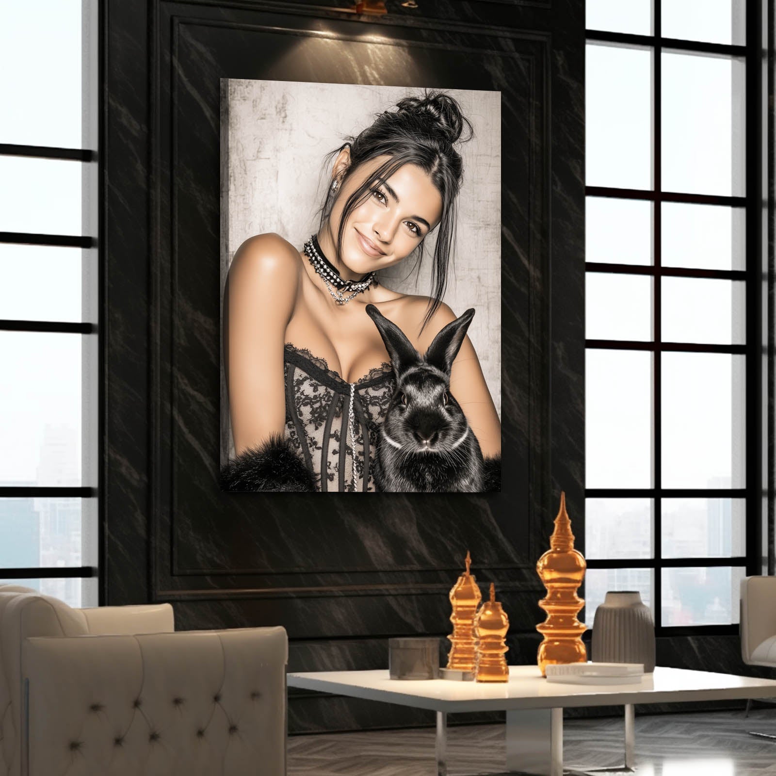 Its soft neutrals paired with gentle lighting elevate your décor with a sense of luxury and contemporary appeal, while the rabbit adds an element of character that feels warm and delightfully unique. This artwork becomes a striking focal point that brings personality and uplifting style into your space.