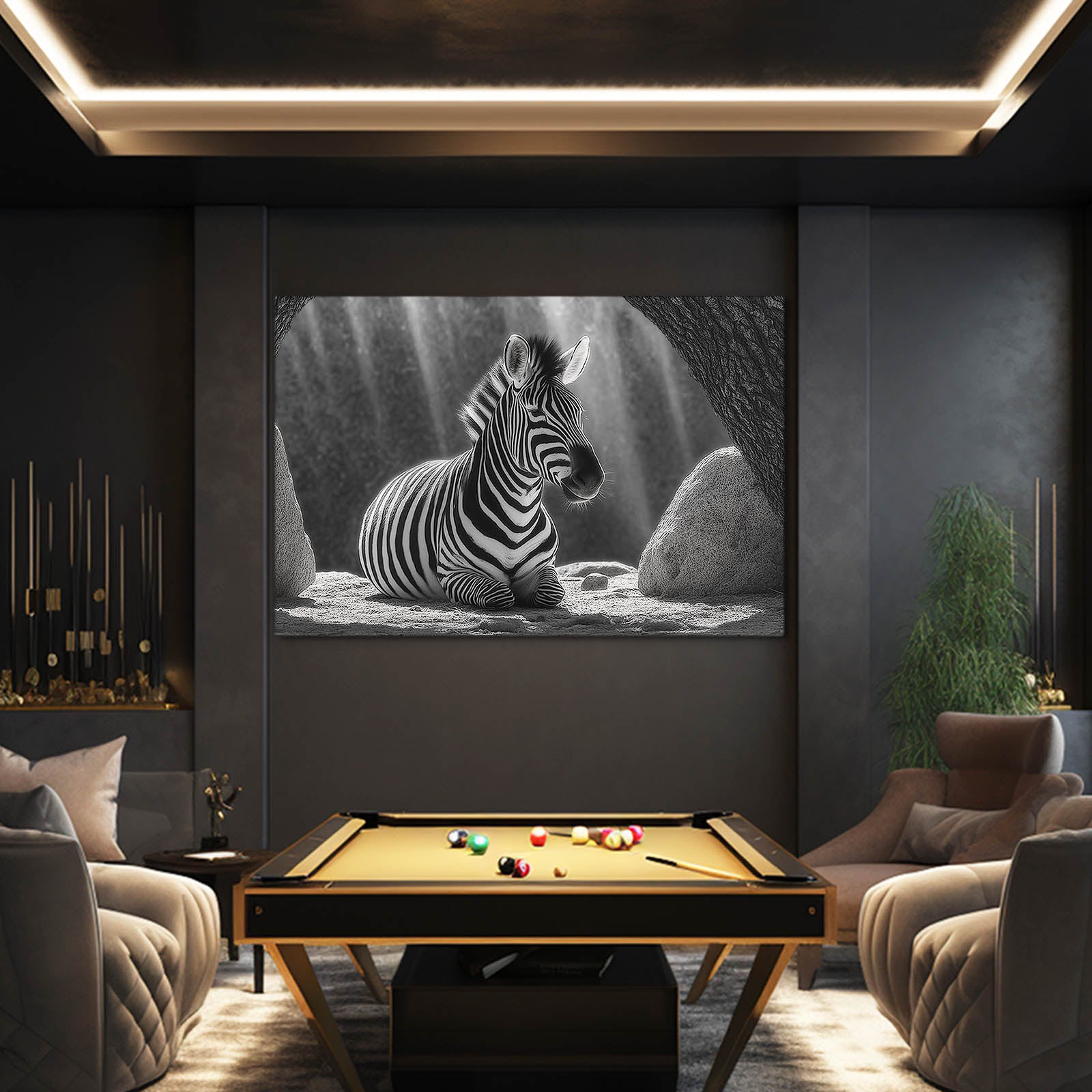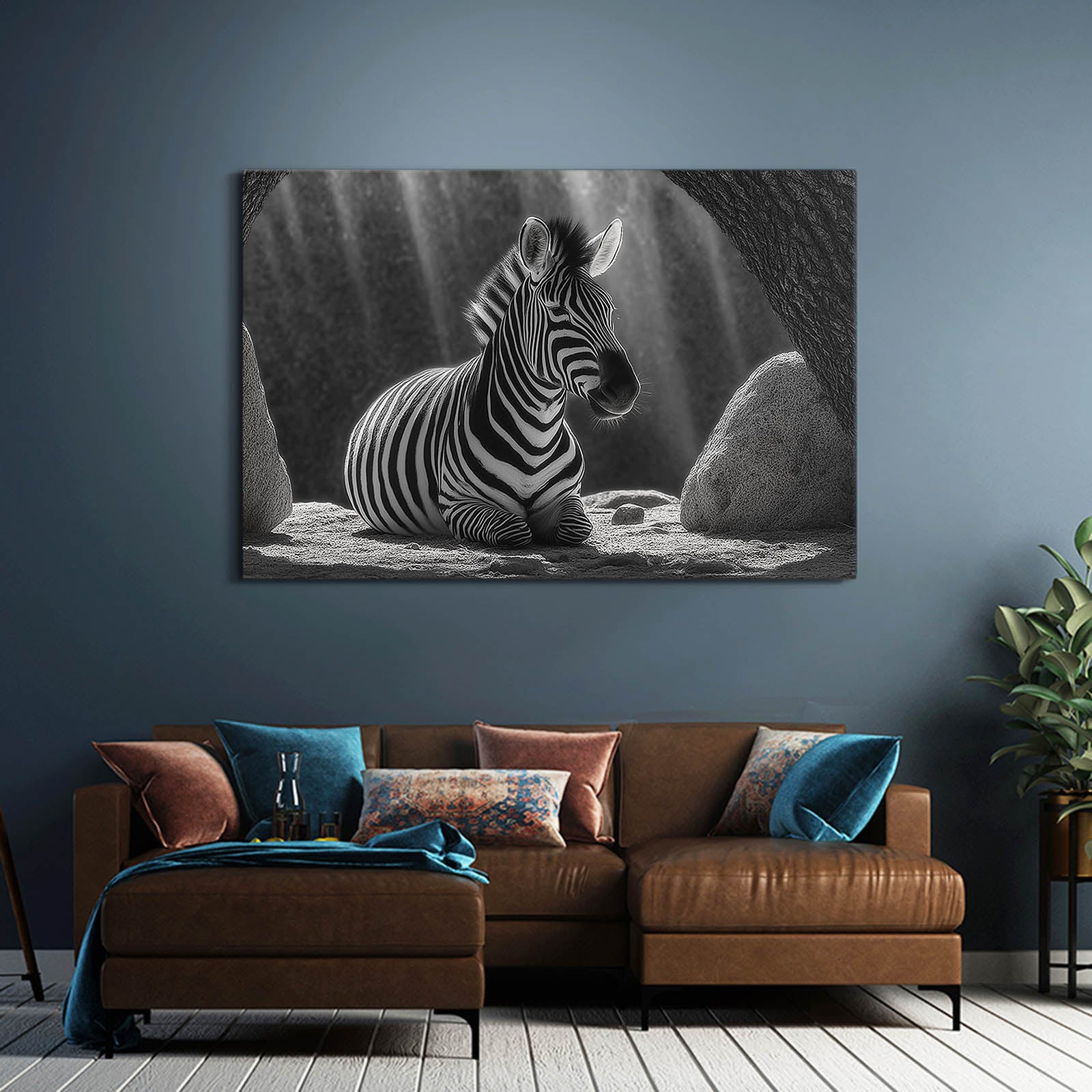 Designed to gently ground your space, this visual scene introduces Black And White Zebra Wall Decor through a peaceful composition that immediately evokes serenity and emotional ease. The relaxed posture invites the eye to slow down, creating a subtle sense of comfort and familiarity. It naturally supports a room atmosphere that feels welcoming and thoughtfully arranged.