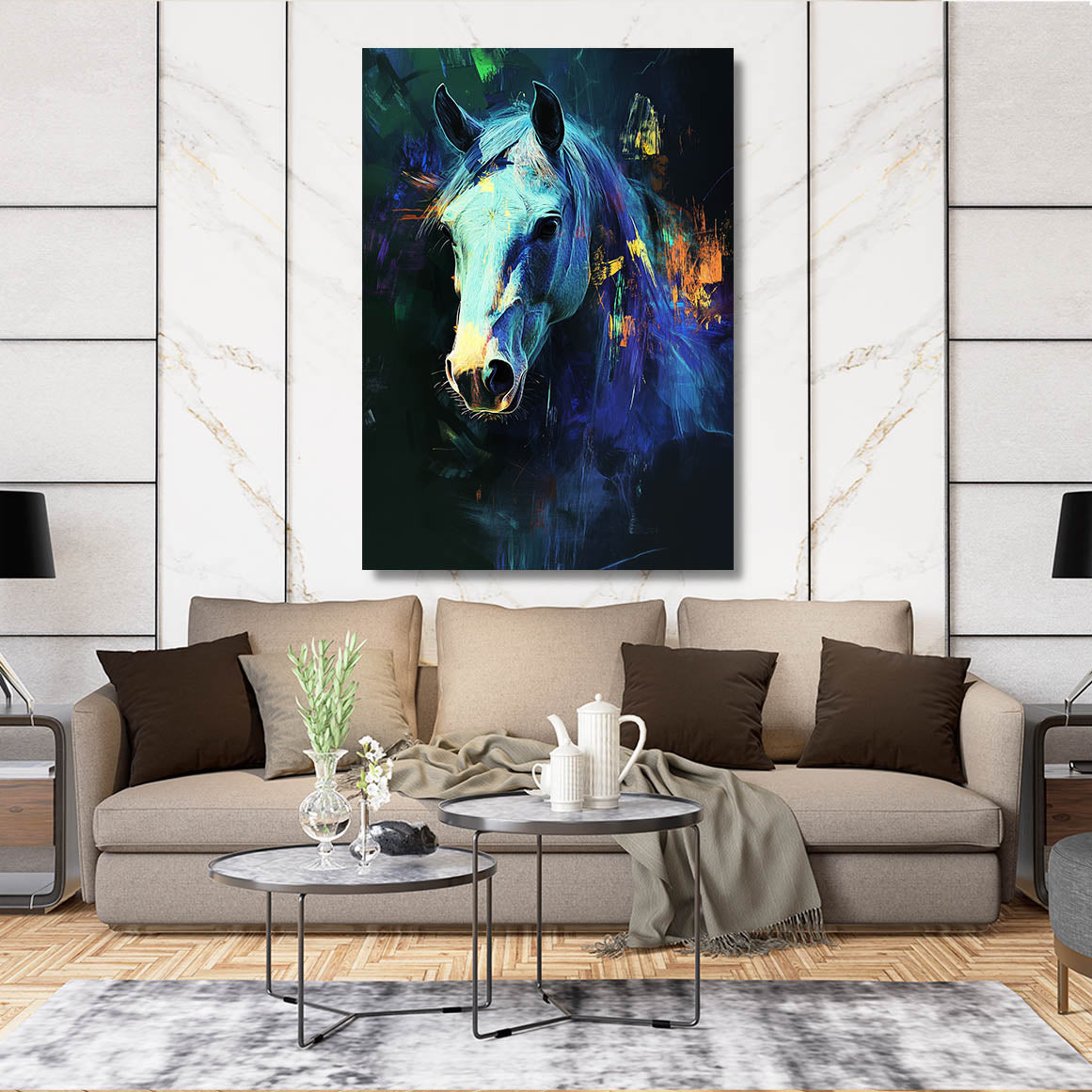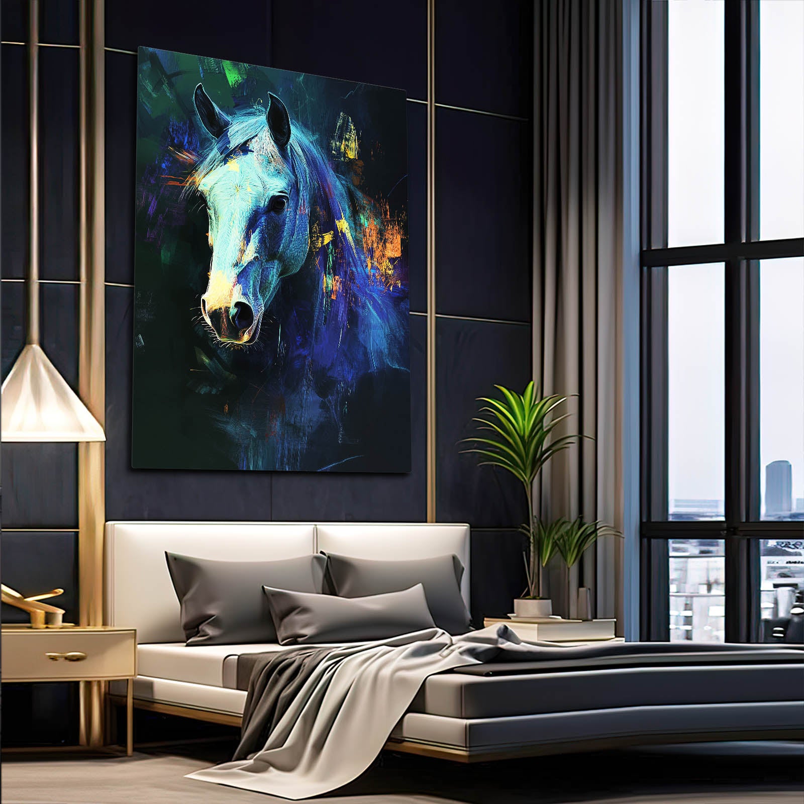 Experimente la audaz fusión de color y gracia con nuestro exclusivo arte de pared de caballos coloridos . Esta pieza, una sorprendente exhibición de brillantez cromática, captura el espíritu libre del majestuoso caballo a través de un espectro vibrante de tonos que bailan sobre el lienzo y evocan movimiento y emoción.