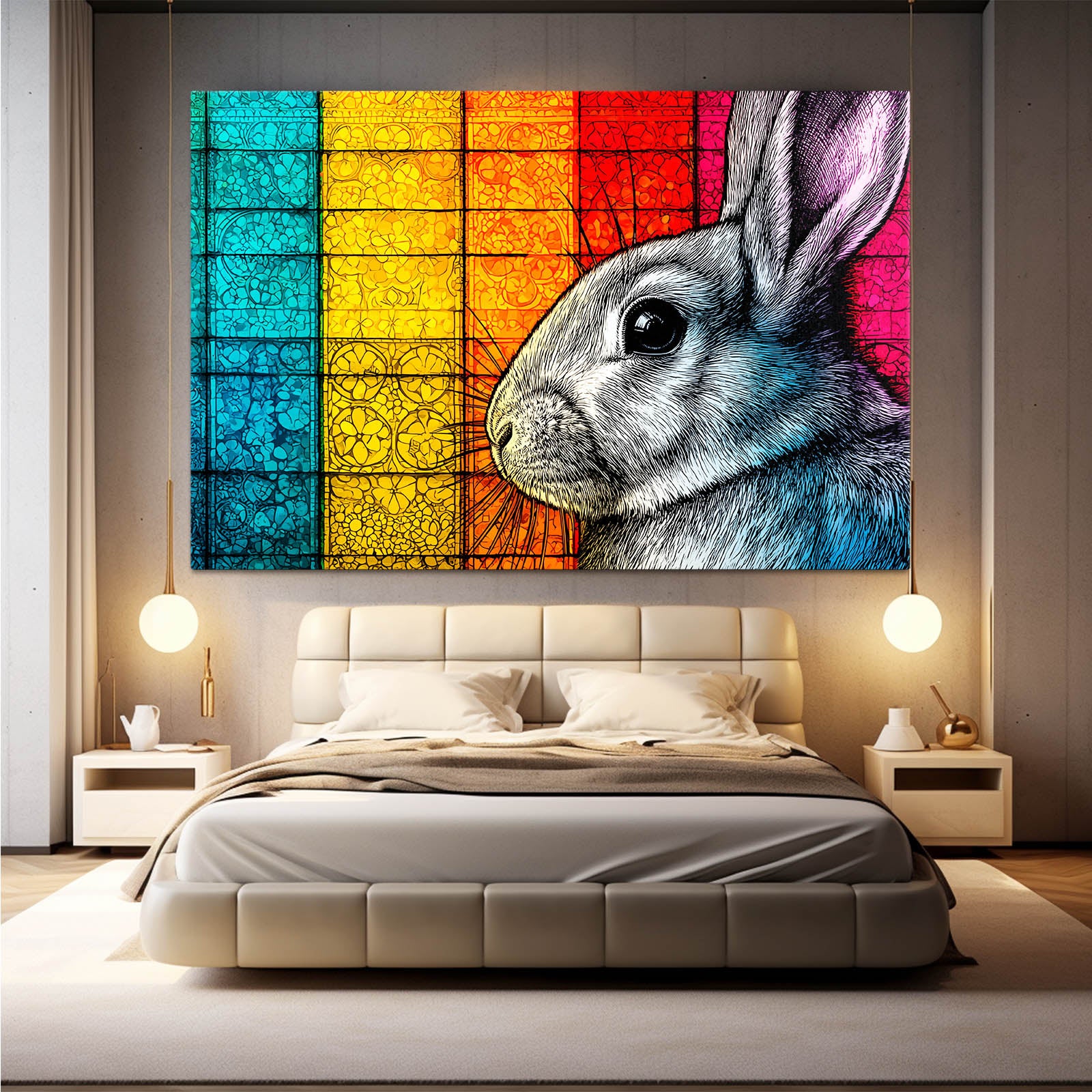 Ideal for living rooms, offices, halls, or artistic corners, this piece introduces a wave of colorful vibrance that immediately transforms the atmosphere. Its bold hues provide an element of modern flair, while the soft rendering of the rabbit keeps the artwork warm and inviting. The result is a design filled with expressive character and refreshing visual delight.