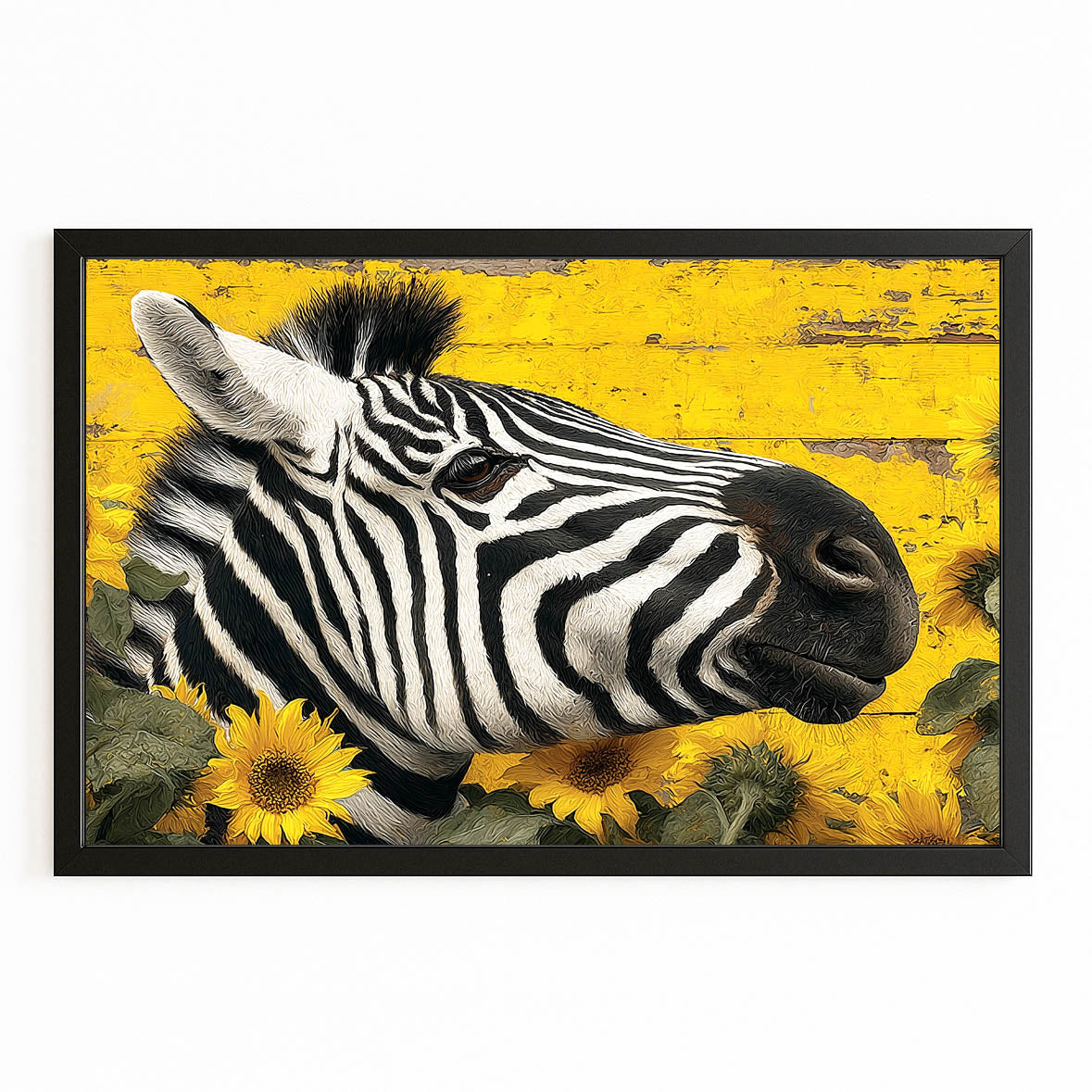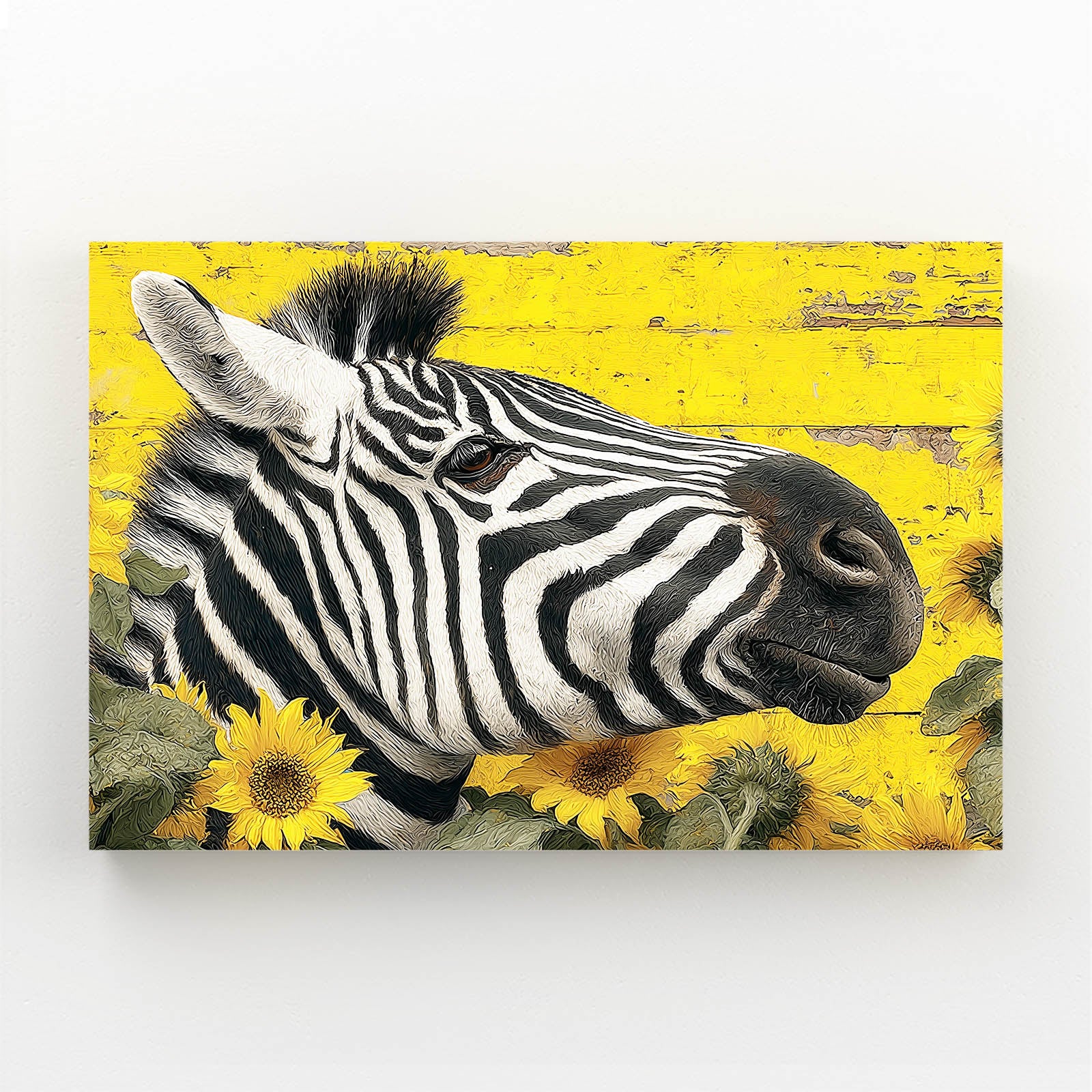 This artwork stands out through vibrant yellow tones, classic black and white stripes, strong subject definition, clean composition, and high visual contrast, making it impossible to ignore on any wall.