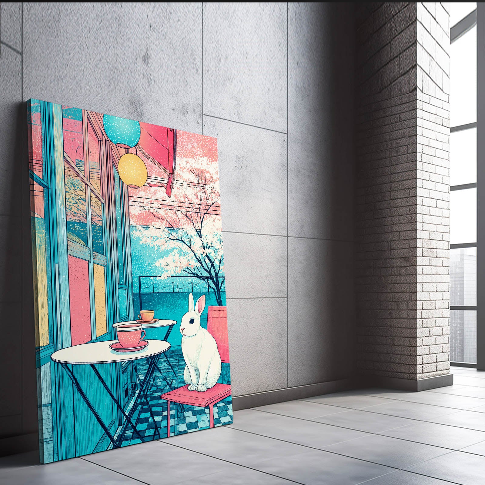 Step into a scene filled with calm imagination as this captivating creation, Coffee Rabbit Wall Art, draws you gently into its dreamy café setting. The soothing blend of pink, teal, and warm yellow tones creates an atmosphere of comfort and relaxation, making it perfect for spaces where you want a soft, uplifting mood. Its charming rabbit character adds a touch of whimsy that feels both delightful and serene.