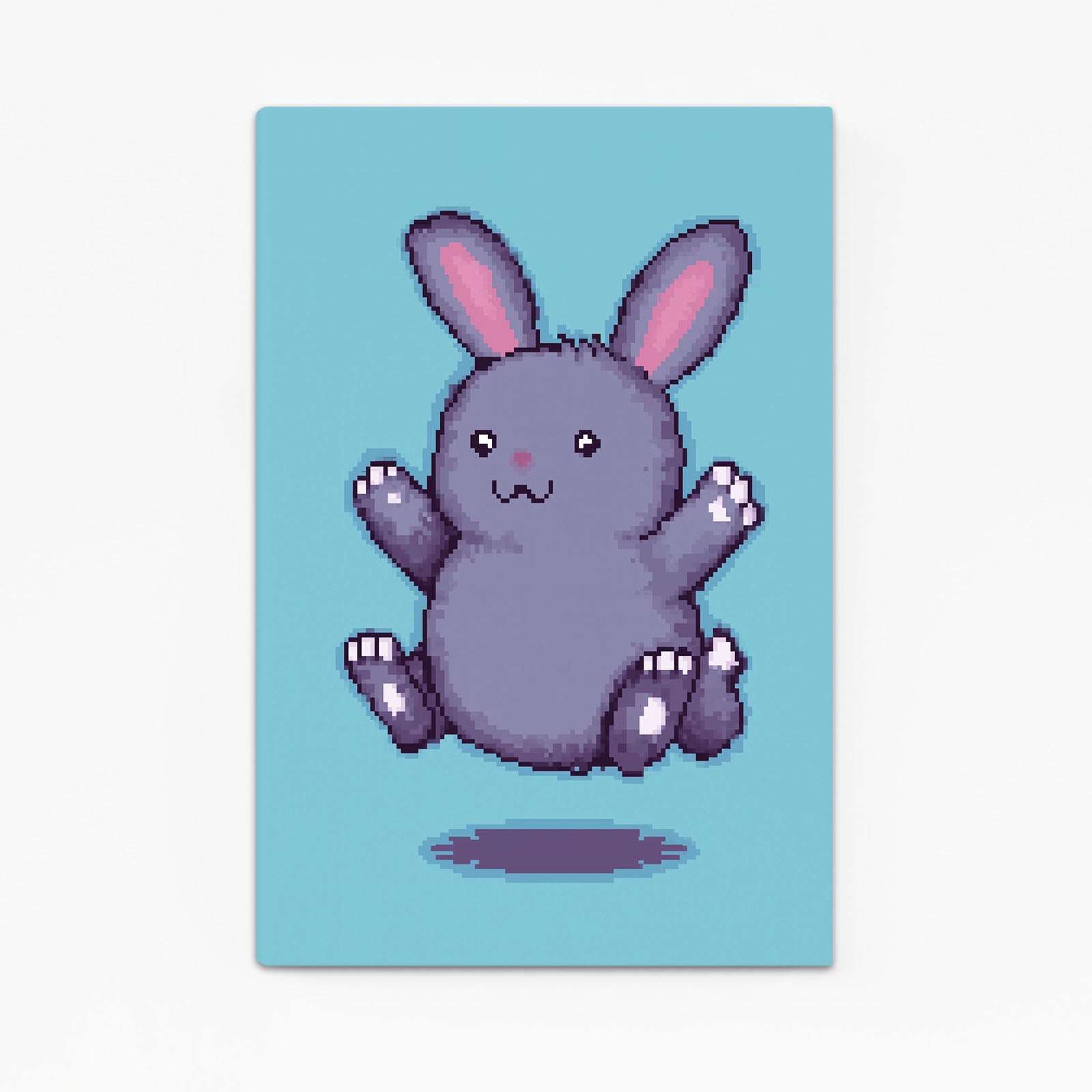 The bouncing pose gives the artwork a sense of fun movement, inviting you to feel a spark of happiness each time you look at it. Every small detail enhances the cute visual appeal, guiding your attention to the rabbit’s expressive eyes and joyful posture. This lively composition adds positive energy wherever it is displayed.