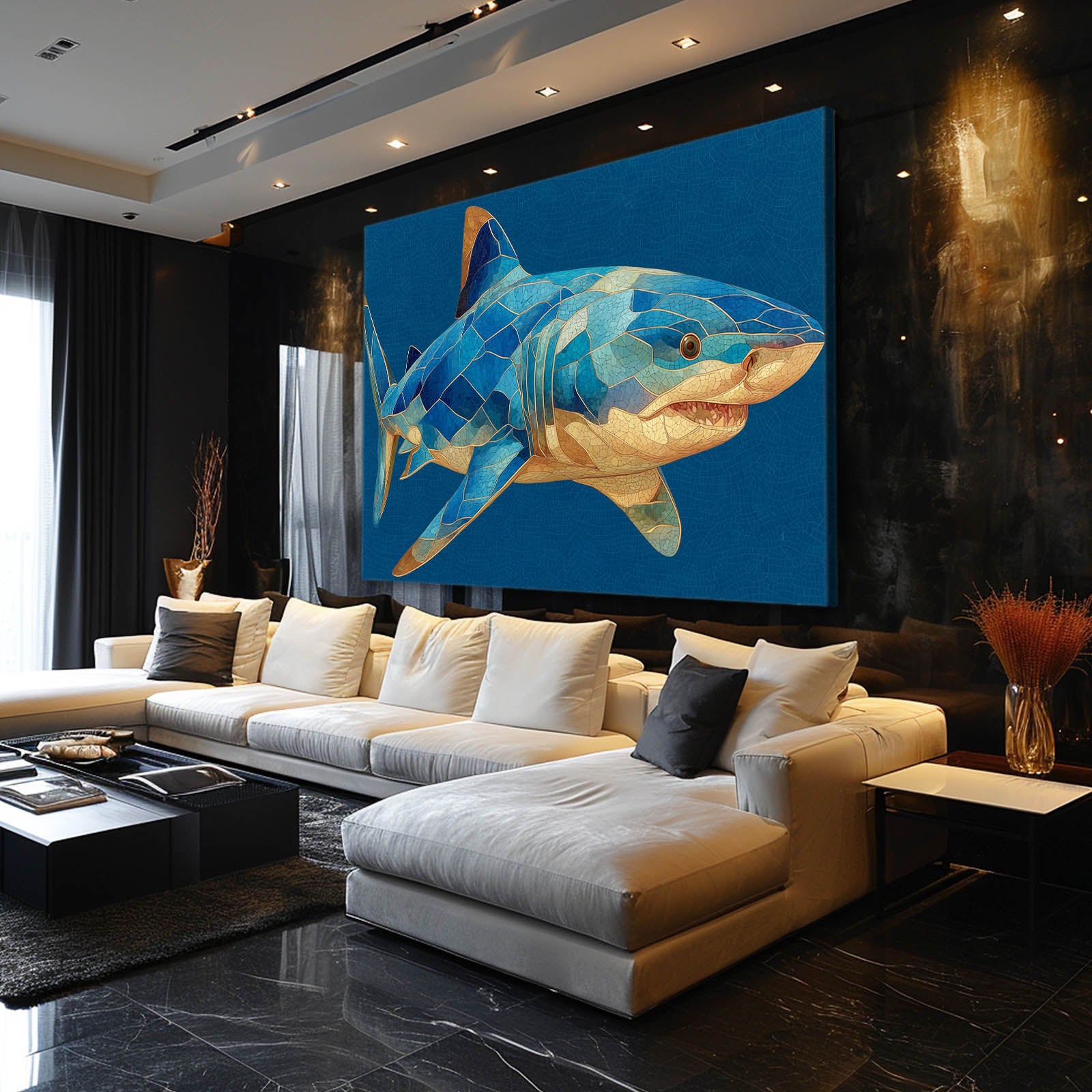 If refined shark imagery and balanced ocean-inspired visuals resonate with your interior style, and you enjoy discovering cohesive designs that elevate modern spaces, explore more distinctive creations in our Shark Art Collection.