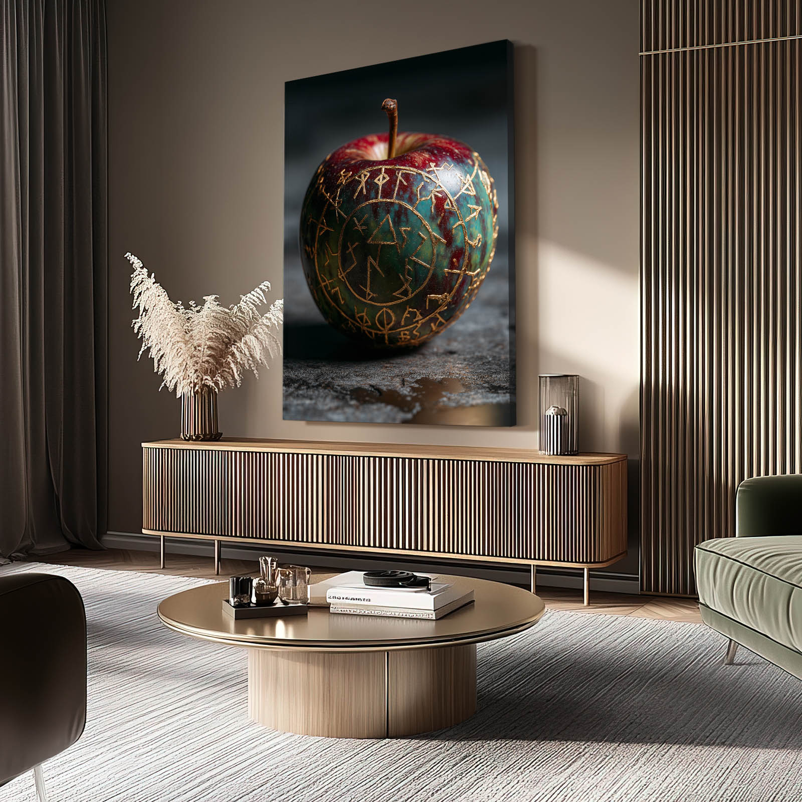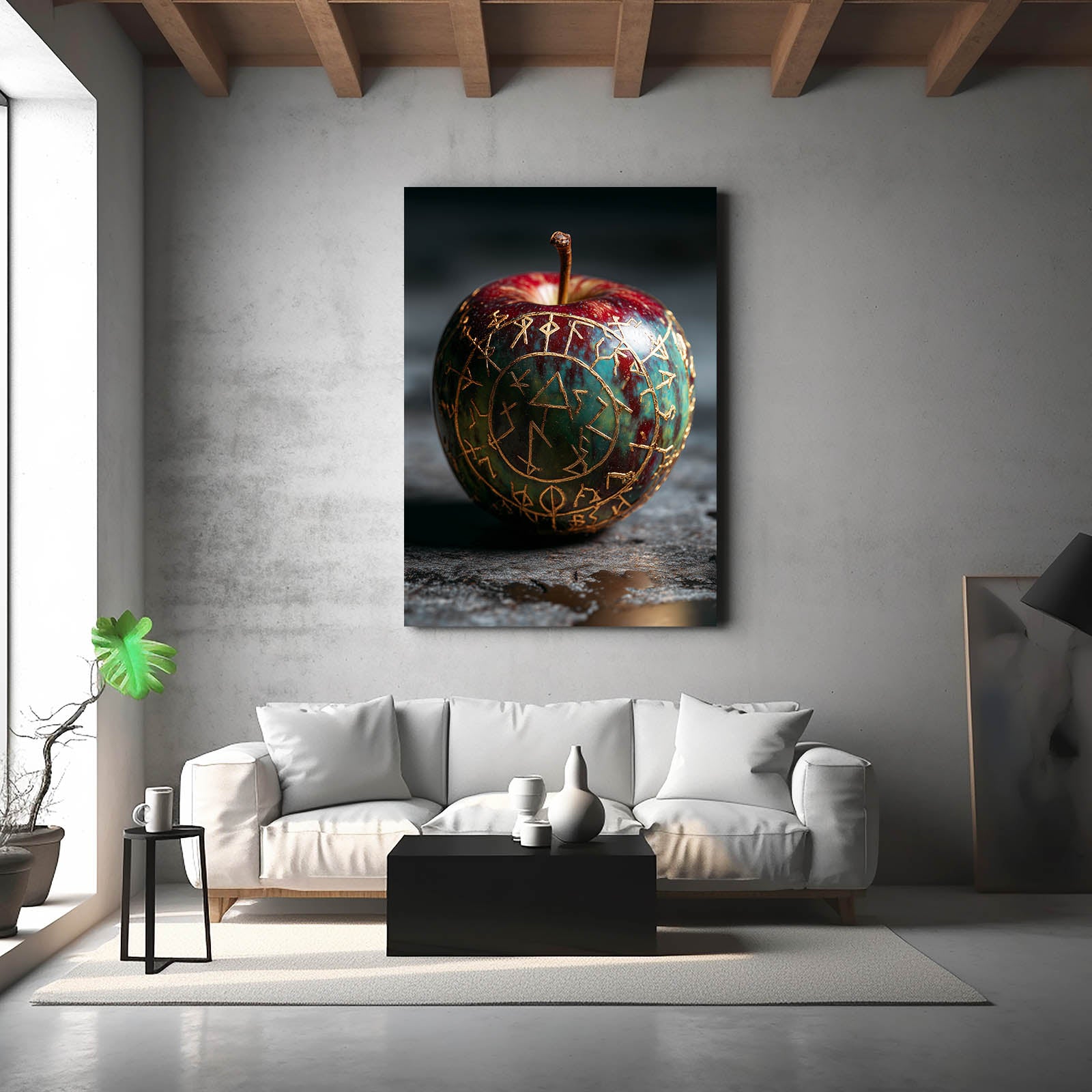 When you first notice Ancien Apple Art, your attention is immediately drawn to its captivating presence and intriguing symbolism. The apple appears adorned with ancient golden symbols that evoke mystery, wisdom, and forgotten stories from another time. This visually powerful composition creates a feeling of depth and curiosity, inviting the viewer to pause and explore every fascinating detail.