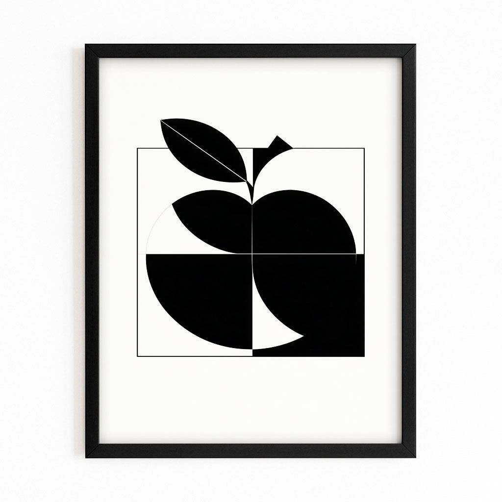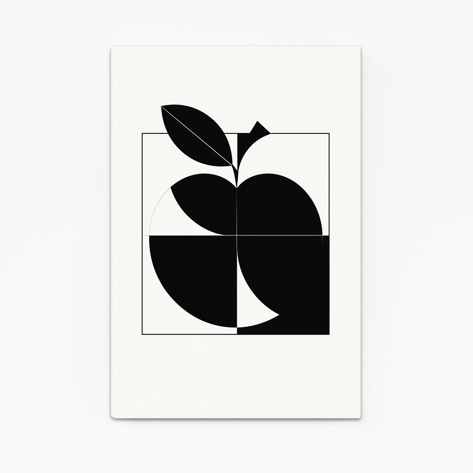 The harmony between deep black elements and the clean white background creates a striking visual balance that feels effortlessly stylish. Subtle lines and structured shapes transform the familiar apple into a piece of contemporary geometric art. The result is a decorative statement that feels minimal yet incredibly expressive.