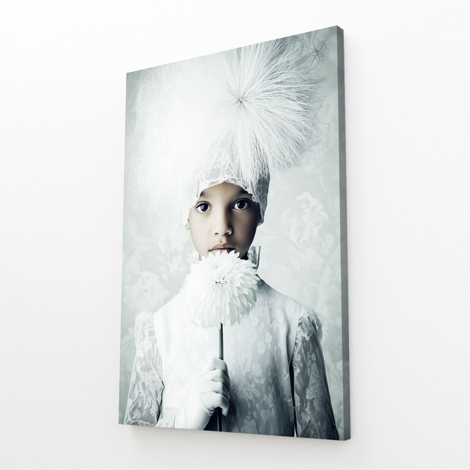 Enter a world of quiet elegance through Black White Print Photography, a piece that captures the pure harmony of innocence and grace. The image reveals a young figure framed in delicate tones, where every detail reflects light, softness, and serenity.