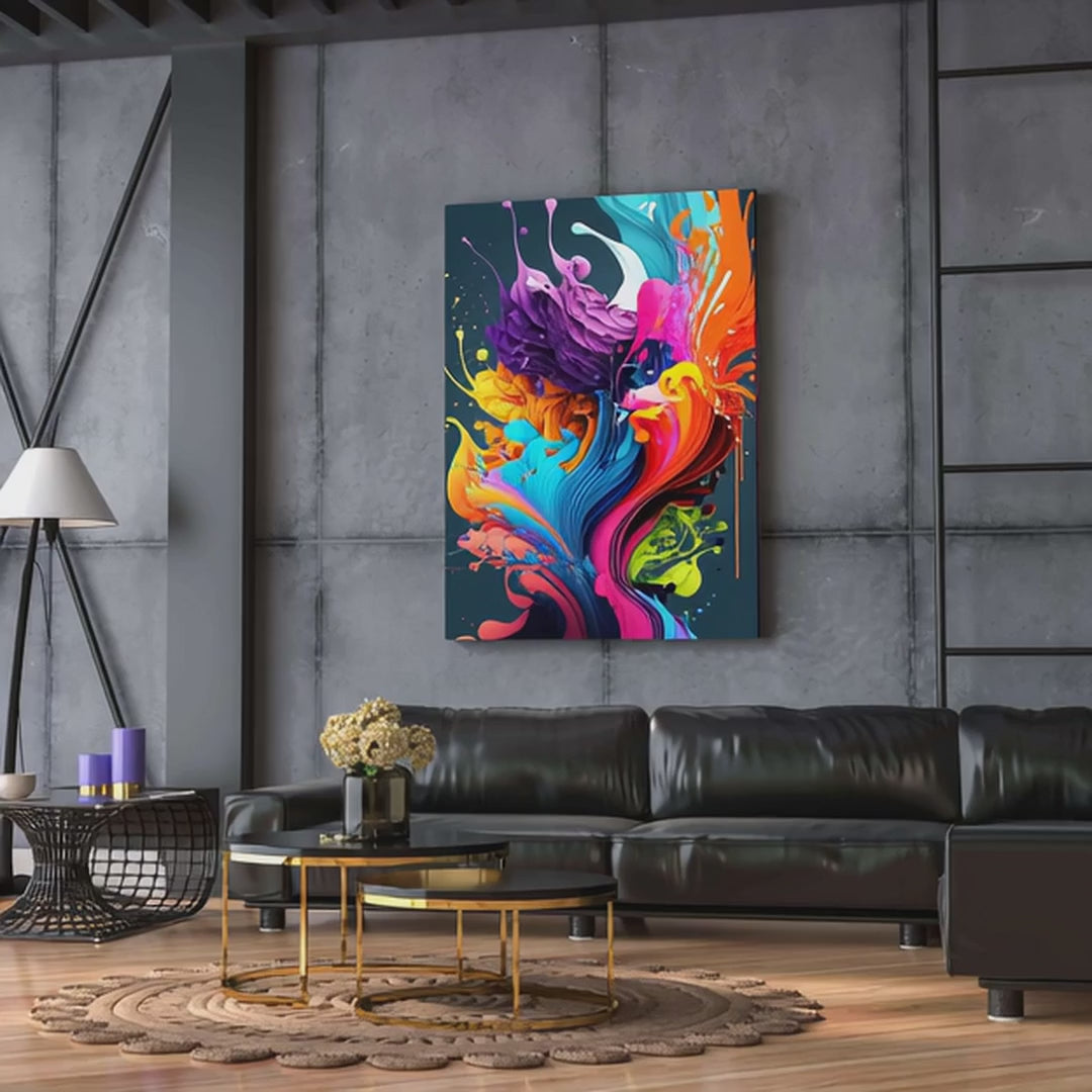 The abstract wall art colorful is a captivating work of art that is sure to bring a touch of vibrancy and personality to any room. The canvas features a striking blend of bright colors, with shades ranging from deep blues and greens to fiery oranges and reds.